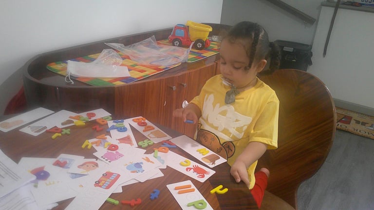 Tatum face is lit up with delight as he engages with the letters and stories that transport him to new adventures. Whether he is flipping through the pages of a picture book or practicing his letters, Tatum's enthusiasm for literacy is evident.
